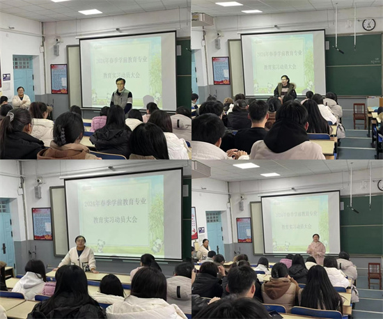 2月29日,太阳集团城87222021级学前教育专业教育实习培训会在4C221举行。会议由学前教育系主任周平老师主持,太阳集团城8722副经理满忠坤,团委书记王瑾,指导老师王斐、王文卉、陈欣馨以及2021级学前教育专业全体同学参会。