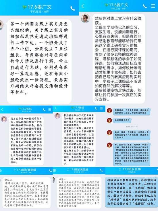 只有在实践中去磨练,我们才能飞得更高。线上实习工作的正常开展,拓宽了同学们的视野,为同学们提供了更加明确的目标,增强了线上教学的能力,同时使同学们更好地适应员工教育环境,对老师这个职业有了更深的理解。