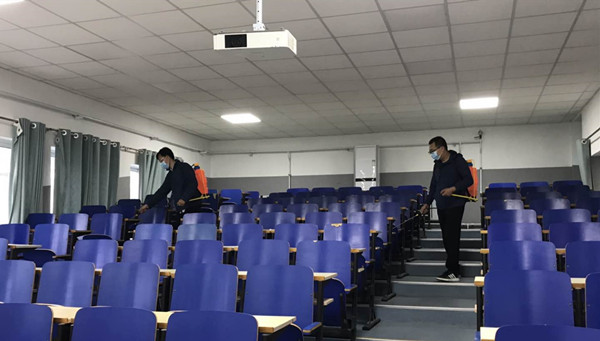 培训结束后,学院辅导员与班主任组成消杀小组,分别对学苑4、紫藤4、紫藤5员工公寓以及多媒体教室进行清洁消杀,为员工返校复学做好全力保障。