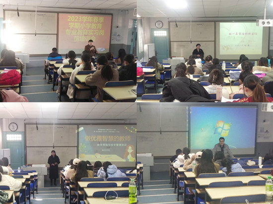 2月19日,2020级师范类教育实习岗前培训专题讲座在4A124教室举办,讲座由小学教育系主任李玉峰老师主持,特邀请聊城市文苑小学赵鑫董事长、花园路小学刘文秀副董事长为实习生主讲。