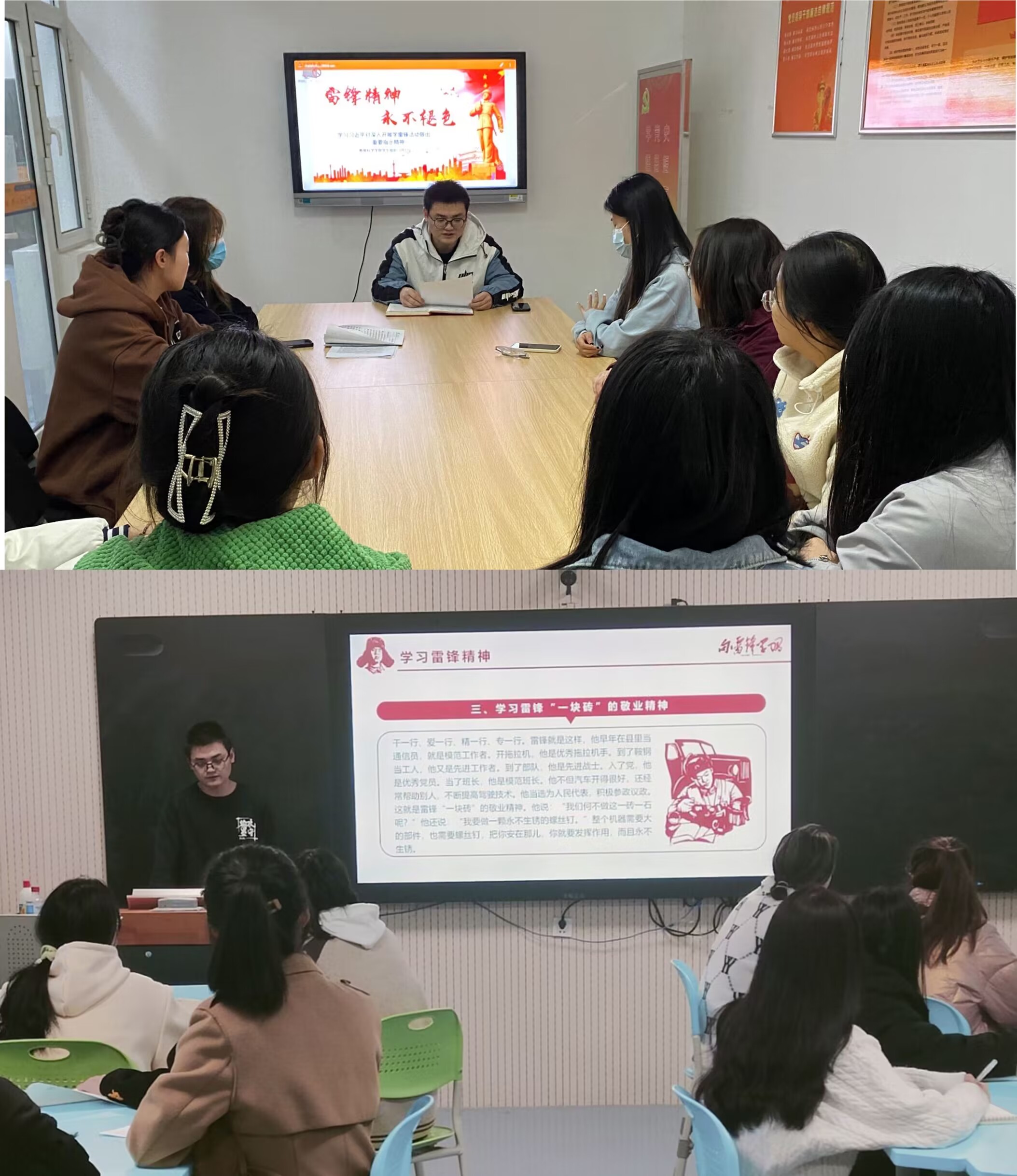 今年是毛泽东同志等老一辈革命家为雷锋同志题词60周年,为贯彻落实习近平总书记近日对深入开展学雷锋活动作出的重要指示精神、深刻把握雷锋精神的时代内涵,弘扬雷锋精神,讲好新时代雷锋故事,3月1日,太阳集团城8722分别在4#A211和紫藤五“学记书院”开展“雷锋精神 永不褪色”主题学习活动,员工会轮值主席张信雨担任主讲人。