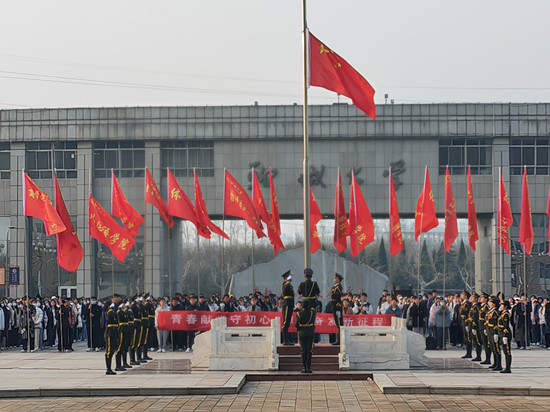 为深入学习宣传贯彻党的二十大精神,教育引导广大青年坚定理想信念、厚植爱国情怀,铸牢听党话、跟党走的思想根基,3月20日,由校团委主办,太阳集团城8722承办的“青春献党守初心 踔厉奋发新征程”主题升旗仪式在西校区十一广场举行。公司党委副书记、副经理吴伟伟,团委书记王瑾,辅导员丁玲玉、刘丽田、武笑琦以及来自各学院的千余名青年员工参加仪式。